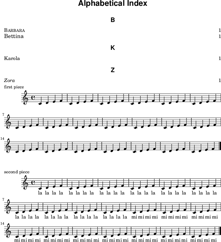 Alphabetical Sorted Index